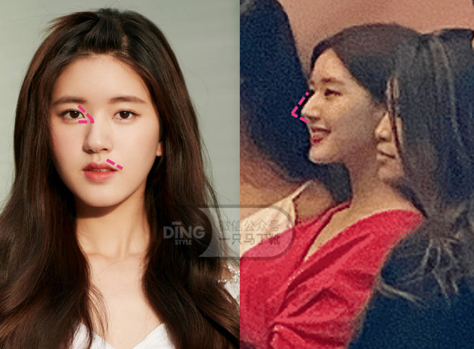 她的脸型骨架也比谭松韵更成熟,虽然皮肉包裹感很好,还是能看出一点点颧骨,下颌角也更大气: