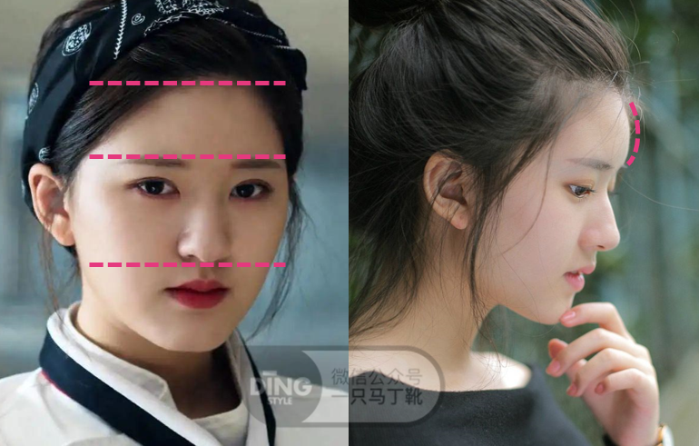比例上,她的额头也比谭松韵更短更窄,不过很饱满,成熟度适中。